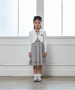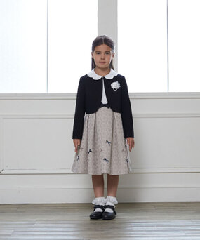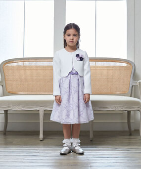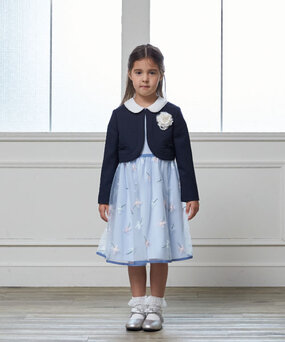 フラワー刺繍ワンピース+襟付ジャケットセット