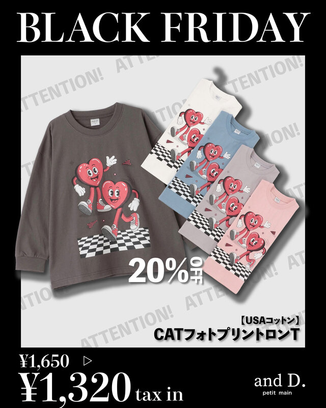 【and D. petit main】【USAコットン】ハートキャラモチーフワイドロンT