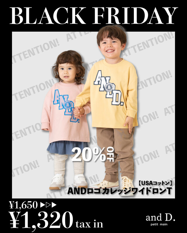 【and D. petit main】【USAコットン】ANDロゴカレッジワイドロンT