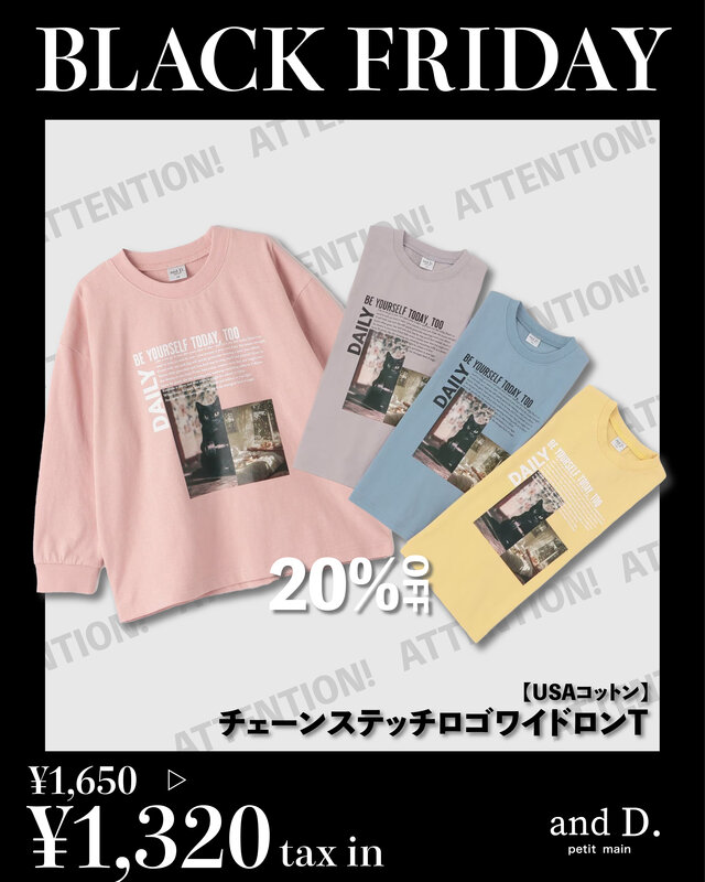 【and D. petit main】【USAコットン】CATフォトプリントロンT