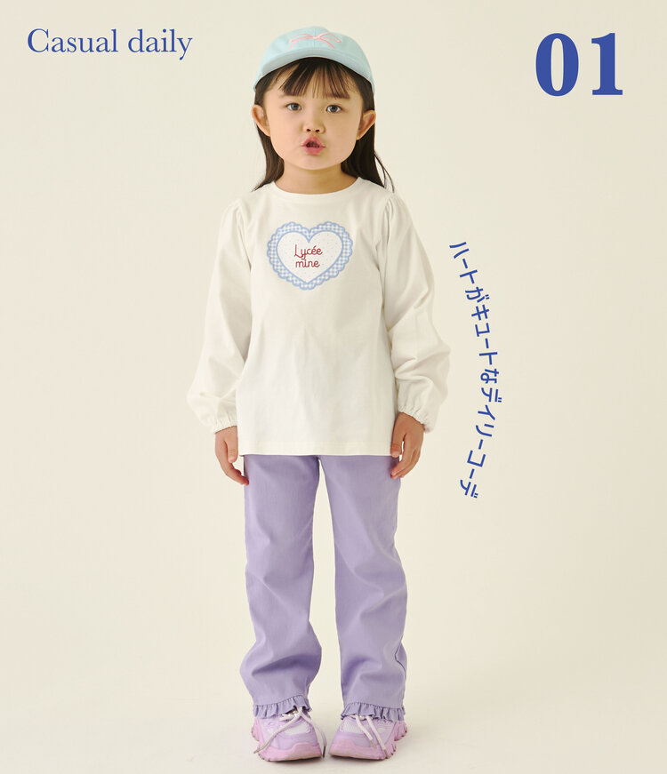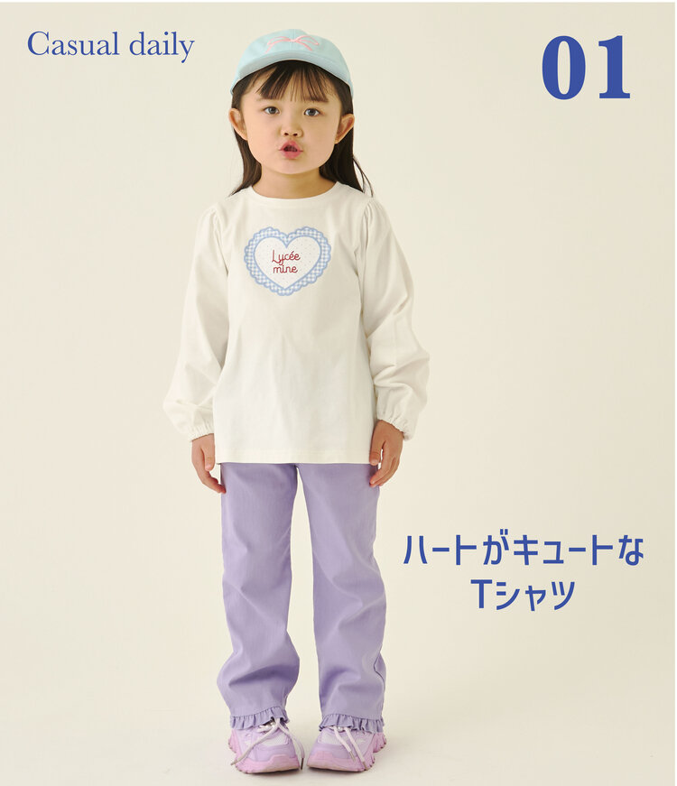 【速乾・UV・型崩れしない】ハートプリントふわっとパフスリーブTシャツ【Lycee mine バレエシリーズ】