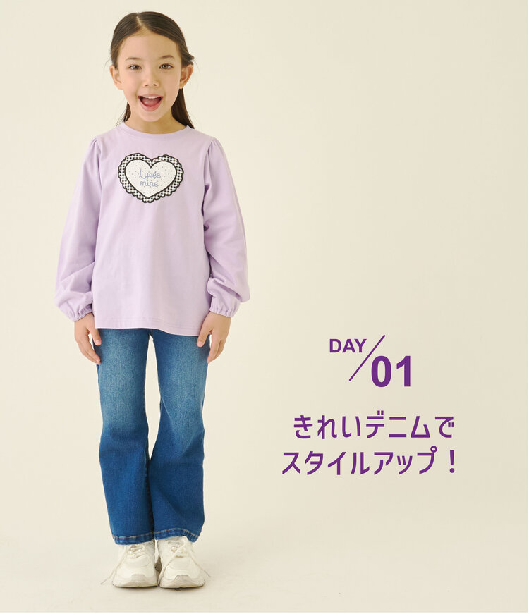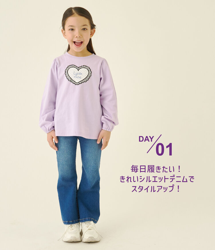 【きれいシルエット】しっかりストレッチハートポケットフレアデニムパンツ