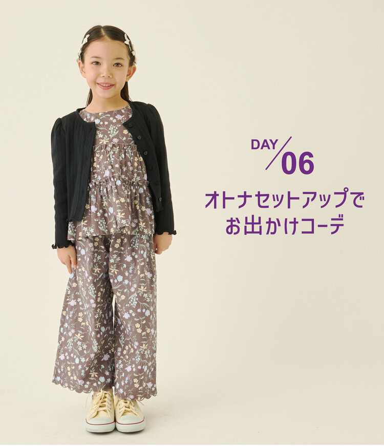 【セットアップ】アソート総柄ティアードブラウス・スカラップパンツセット