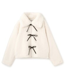 前あきリボンとふわふわのファーが可愛らしい印象に♡上品に見える毛足の長さはもふもふで肌触り抜群!ショート丈のデザインがスタイルアップ効果に!