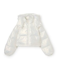 ショート丈でスタイルアップ◎万能中綿ジャケット!取り外しが可能な大きめフードと刺繍がポイント!オーロラ生地が今っぽくて映えるアウター!