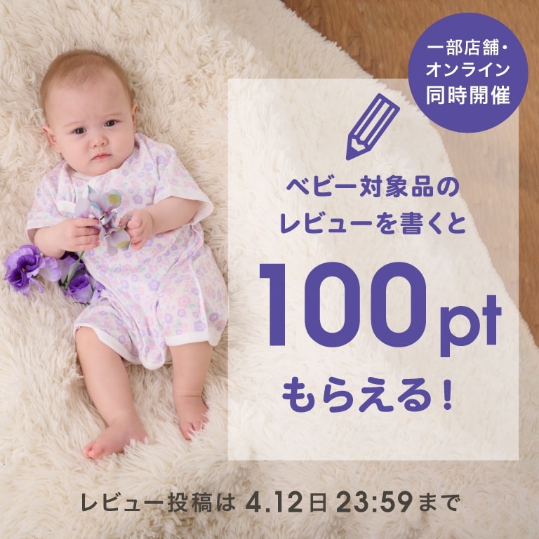 対象ベビーアイテムレビューで100ptプレゼント!