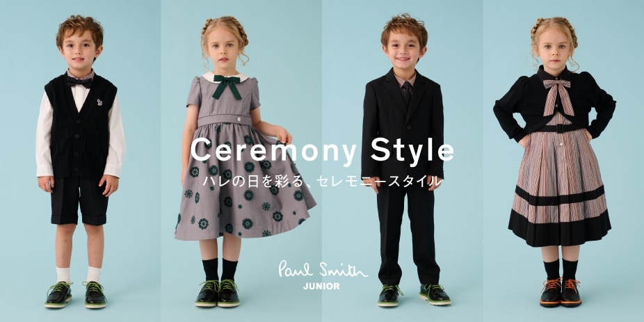 「ポール・スミス ジュニア」は、メンズとウィメンズのコレクションに見られる鮮やかな色使い、ストライプ、遊び心溢れるプリントといったポール・スミスらしさはそのままに、子供らしい可愛らしさと機能性を兼ね備えたウェアとアクセサリーを展開する、ボーイズ、ガールズ、ベビーのためのコレクションです。