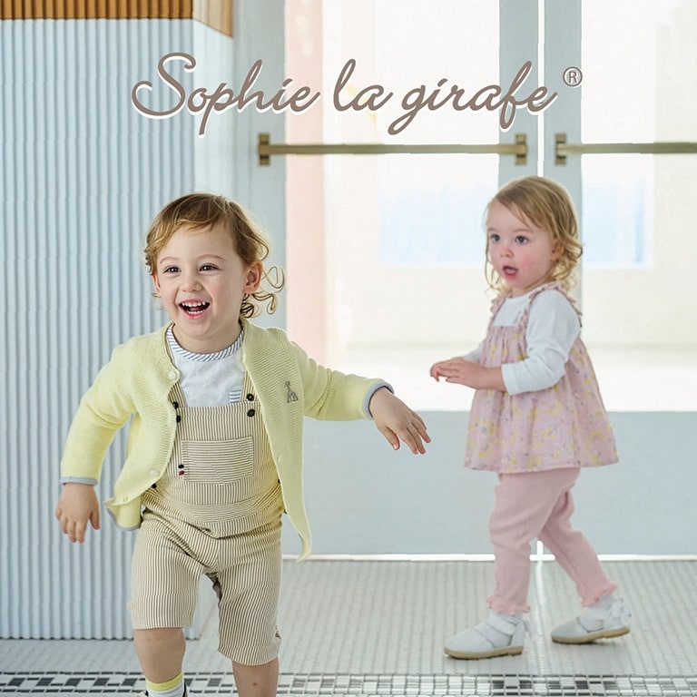 フランスで3世代にわたって愛されている赤ちゃんのおもちゃ「キリンのソフィー」から誕生したベビーウェア。