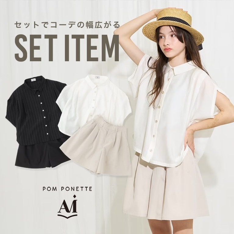 【AMI】透かし編みニットプルオーバー×Tシャツセット