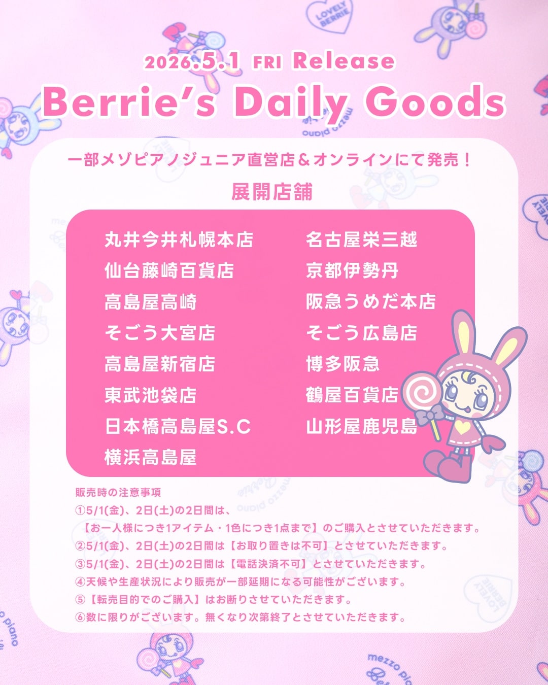 メゾピアノジュニアより、ベリエちゃん柄の折り畳み傘とタオルが登場