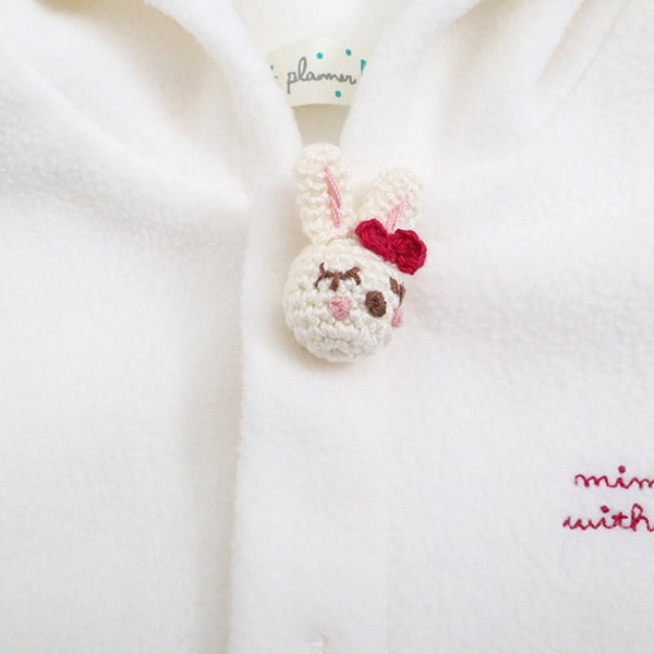 うさぎのmimiちゃんの編みぐるみとフードのうさぎのお耳がかわいいフリース素材のマント。適度な厚みで軽く保温性抜群のフリースを使用しています。ベビーちゃんの体温調節に欠かせないアイテムです。mimiちゃんの編みぐるみでベビーちゃんもにっこり、フードをかぶればうさぎさんに!編みぐるみ部分はスナップ釦仕様です。ご自宅用にもギフトとしてもピッタリなアイテムです。