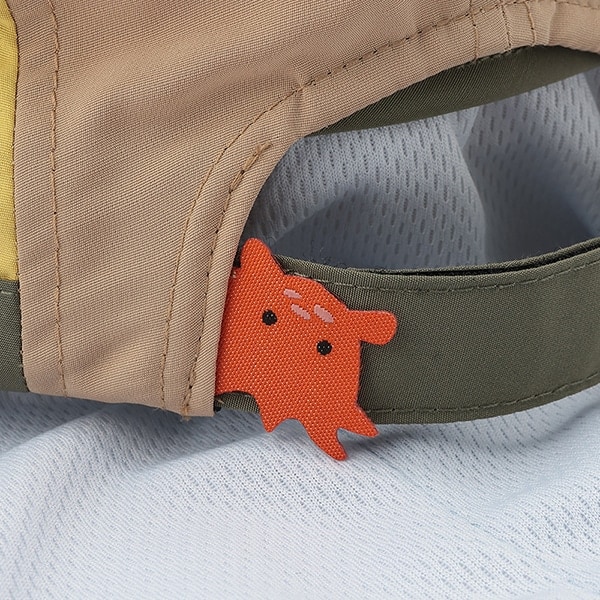 メンダコピスネームがついた面ファスナーベルトで、サイズ調整もできます。