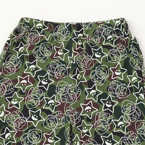 カモ柄の上にファニーゴリラとキラッキーを総柄プリントしたショートパンツです。