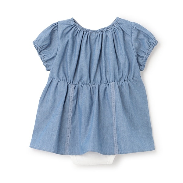 切り替えデザインの生地を重ねてワンピース風に仕上げたロンパースです。