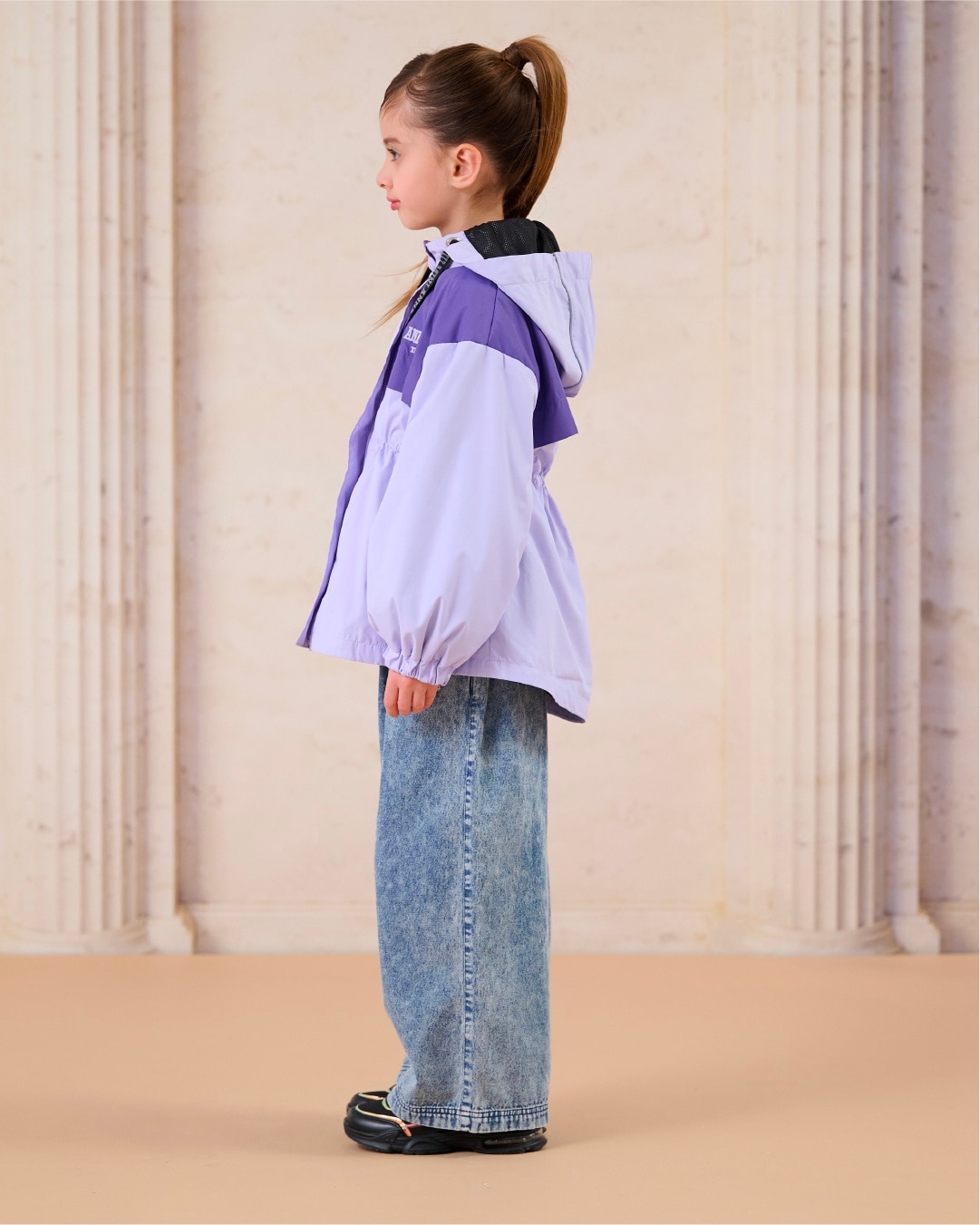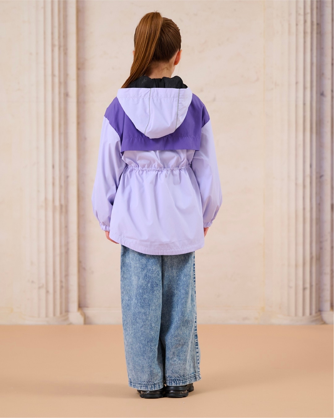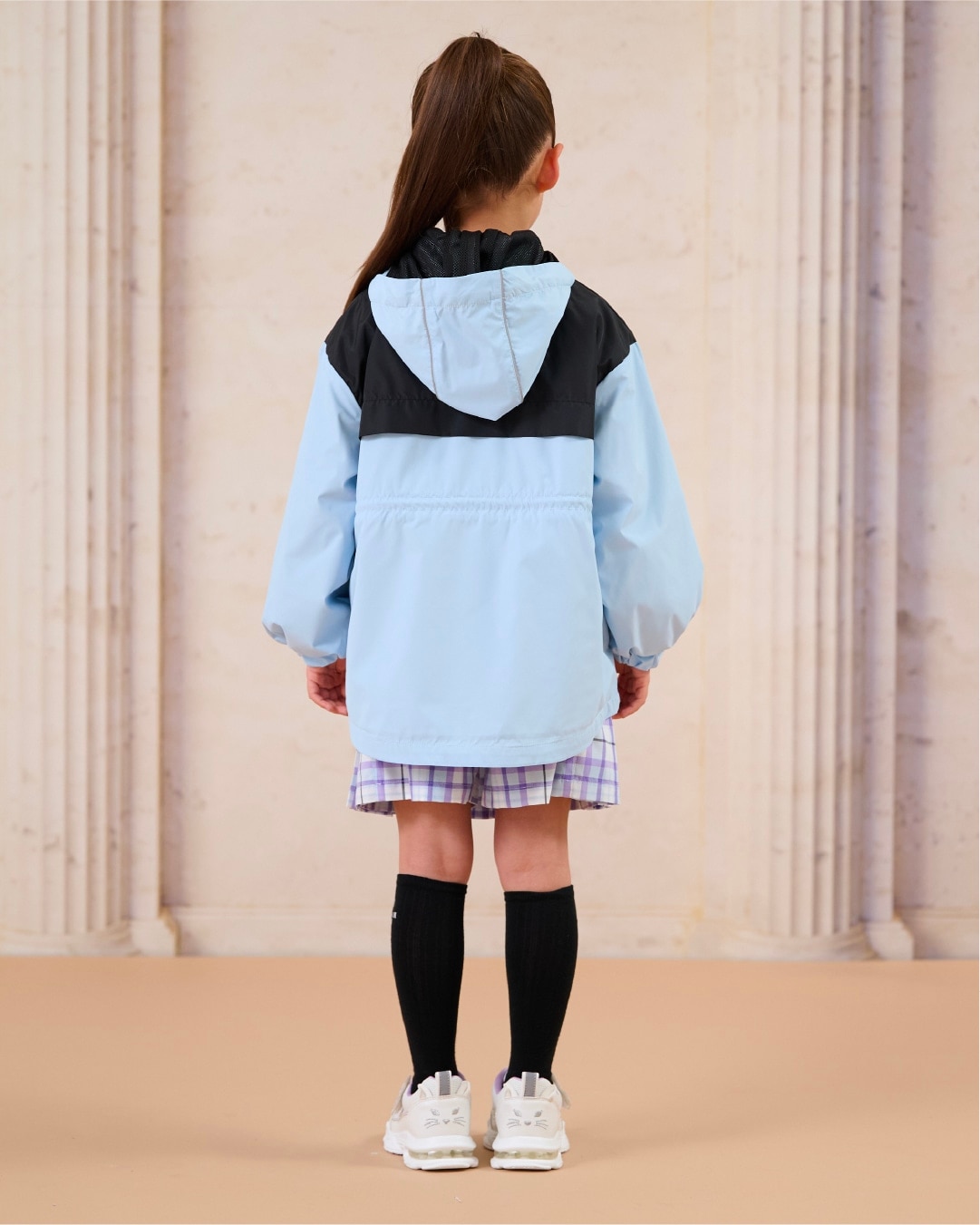 通学にも使いやすいバイカラー&取り外しフードのデザイン