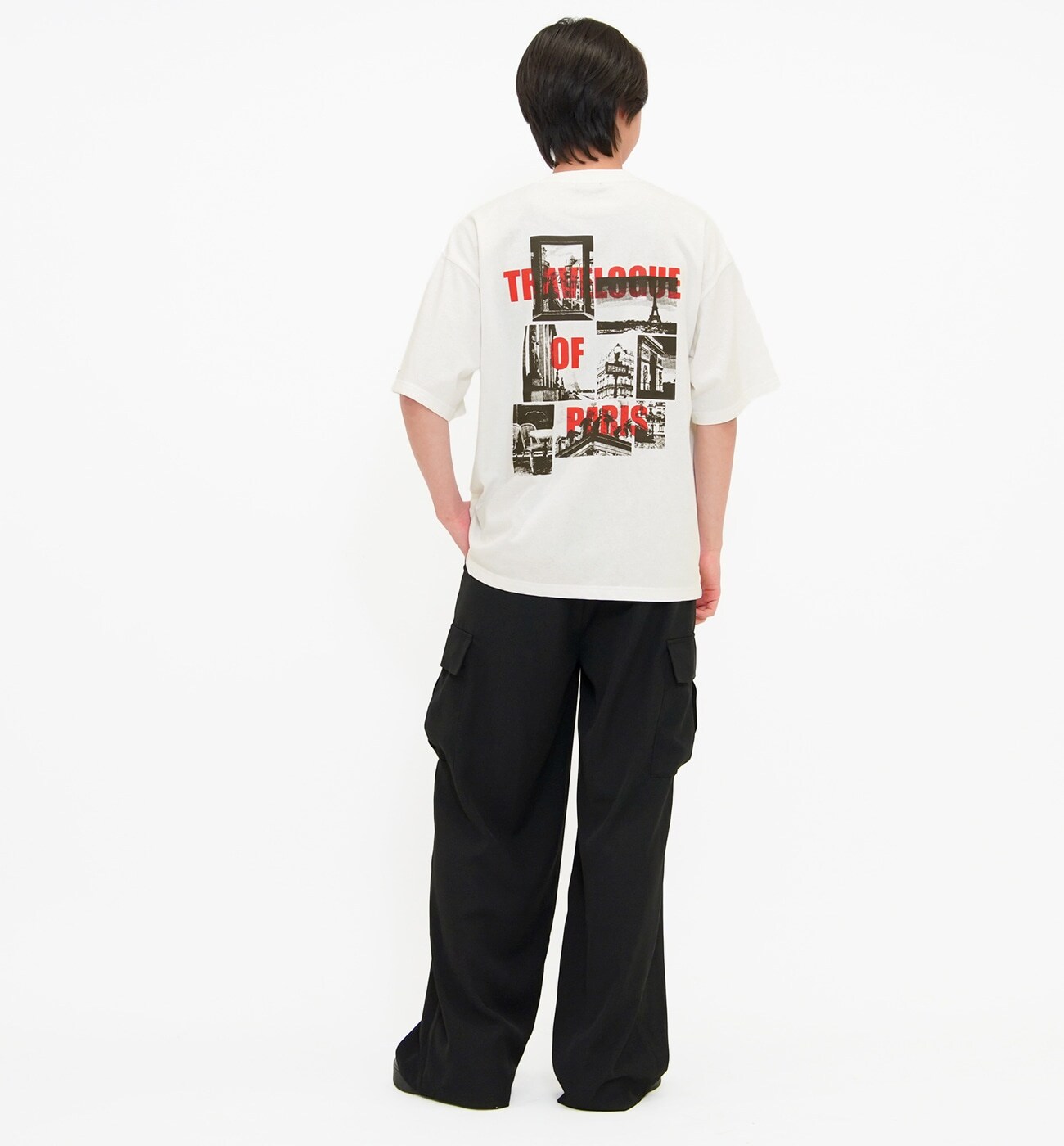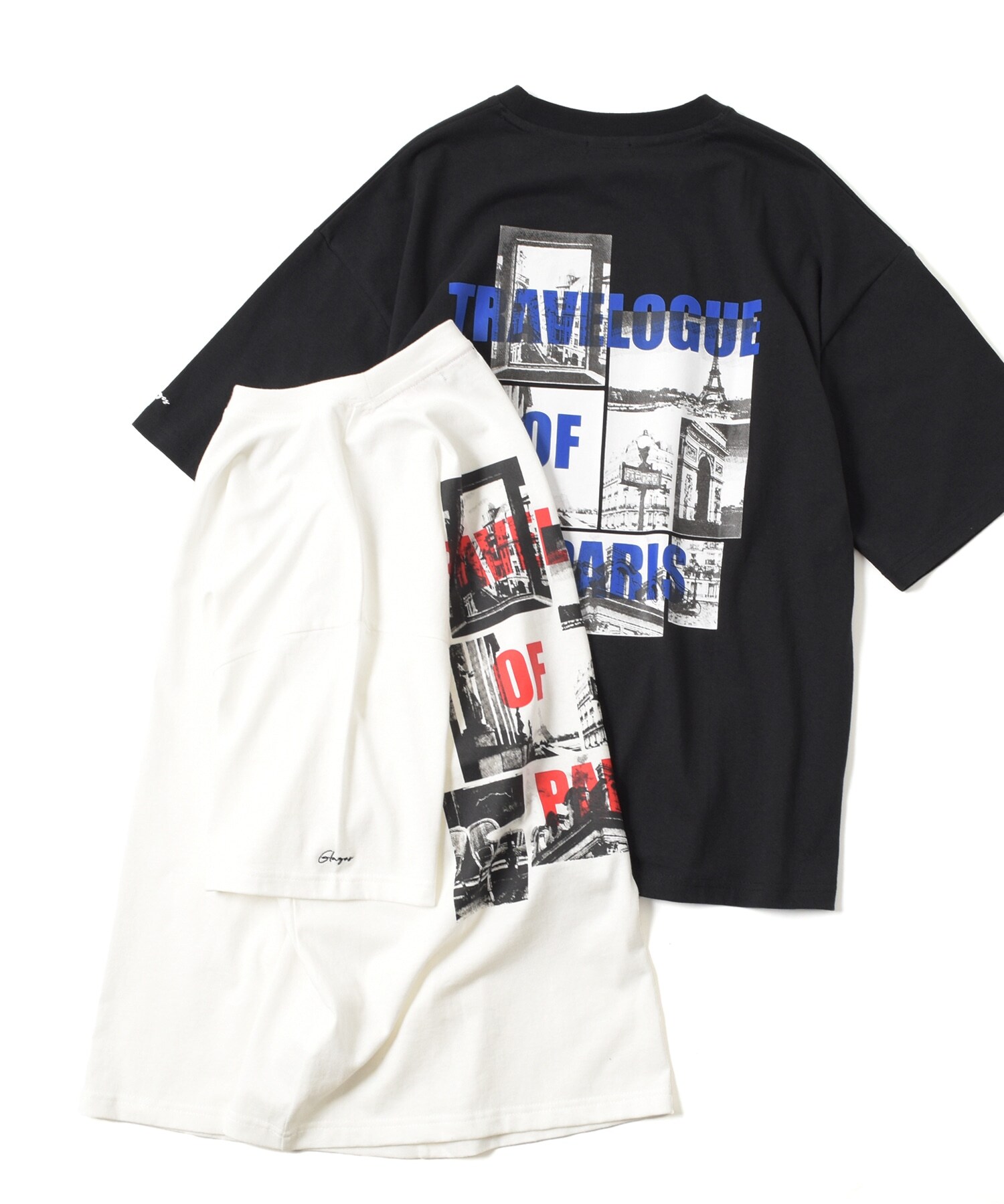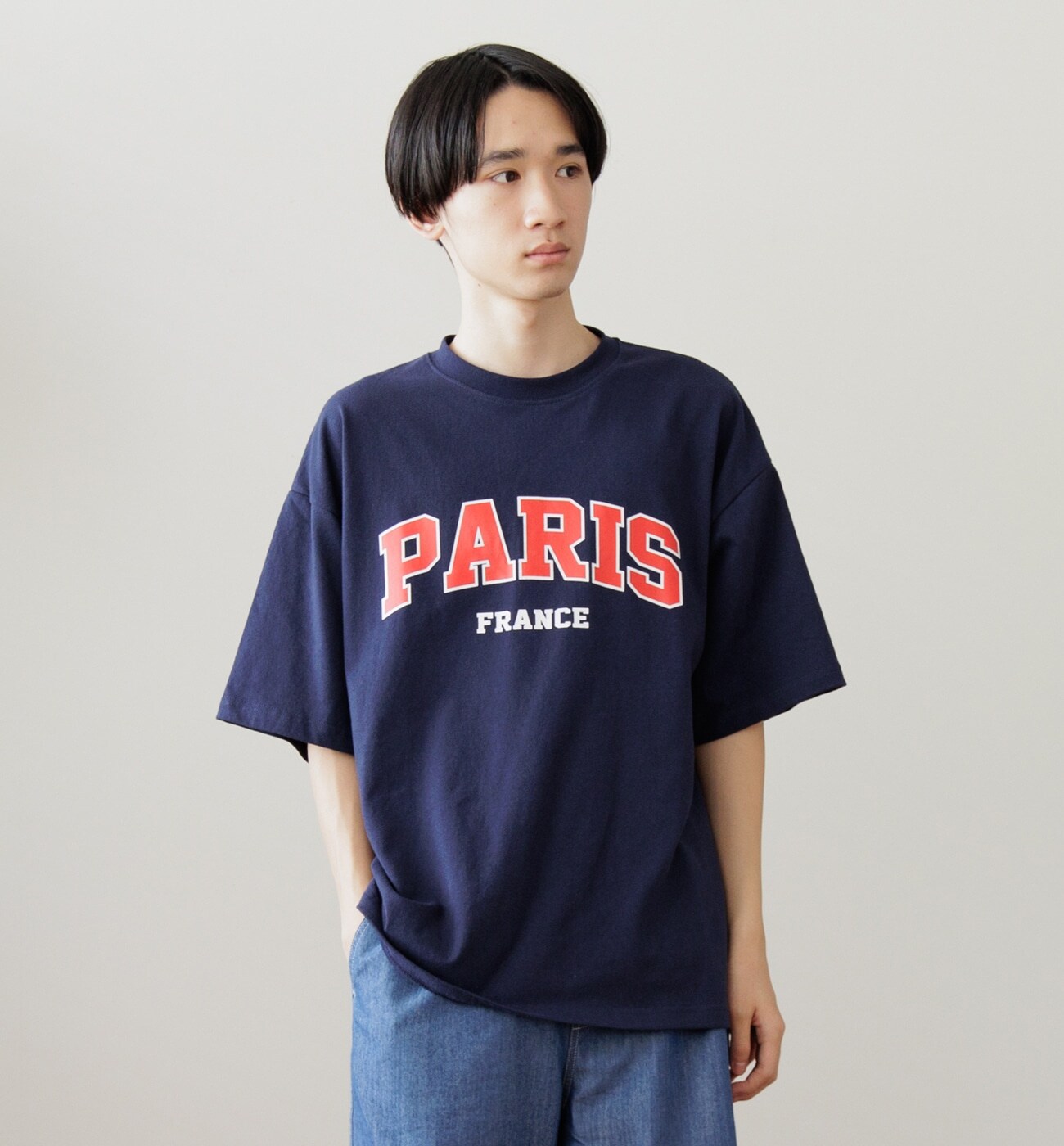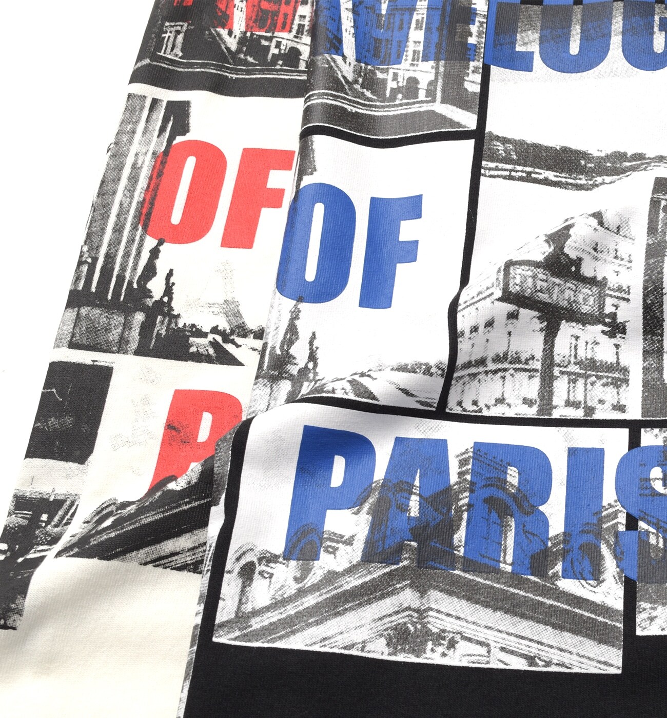 パリの街並みのフォトをコラージュしたデザインで、きれいめにもカジュアルにも着こなせるアイテムです。