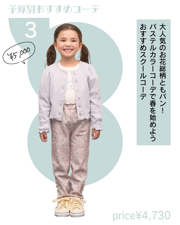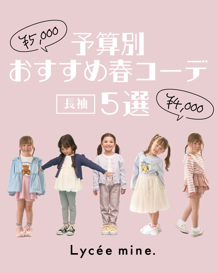 春気温の変わりやすい春夏は、はおりもので調整するコーデがオススメ。毎日カワイイを楽しみたいから、できるだけおさいふに優しくそろえたい!ってことでプチプラがジマンのリセマインにおまかせ♡5000円前後でカワイイコーデが完成!色や柄選びで、ママと娘ちゃんの意見が違っても、どっちもGETできるかも?!