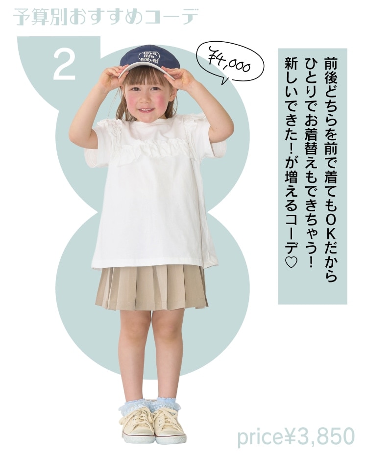 「どちらが前でもOK」、前も後ろもかわいくて、どちらを前に着ても大丈夫なデザイントップスなら、ひとりでのお着替えもラクラク。その日の気分で前後を選んでくださいね!