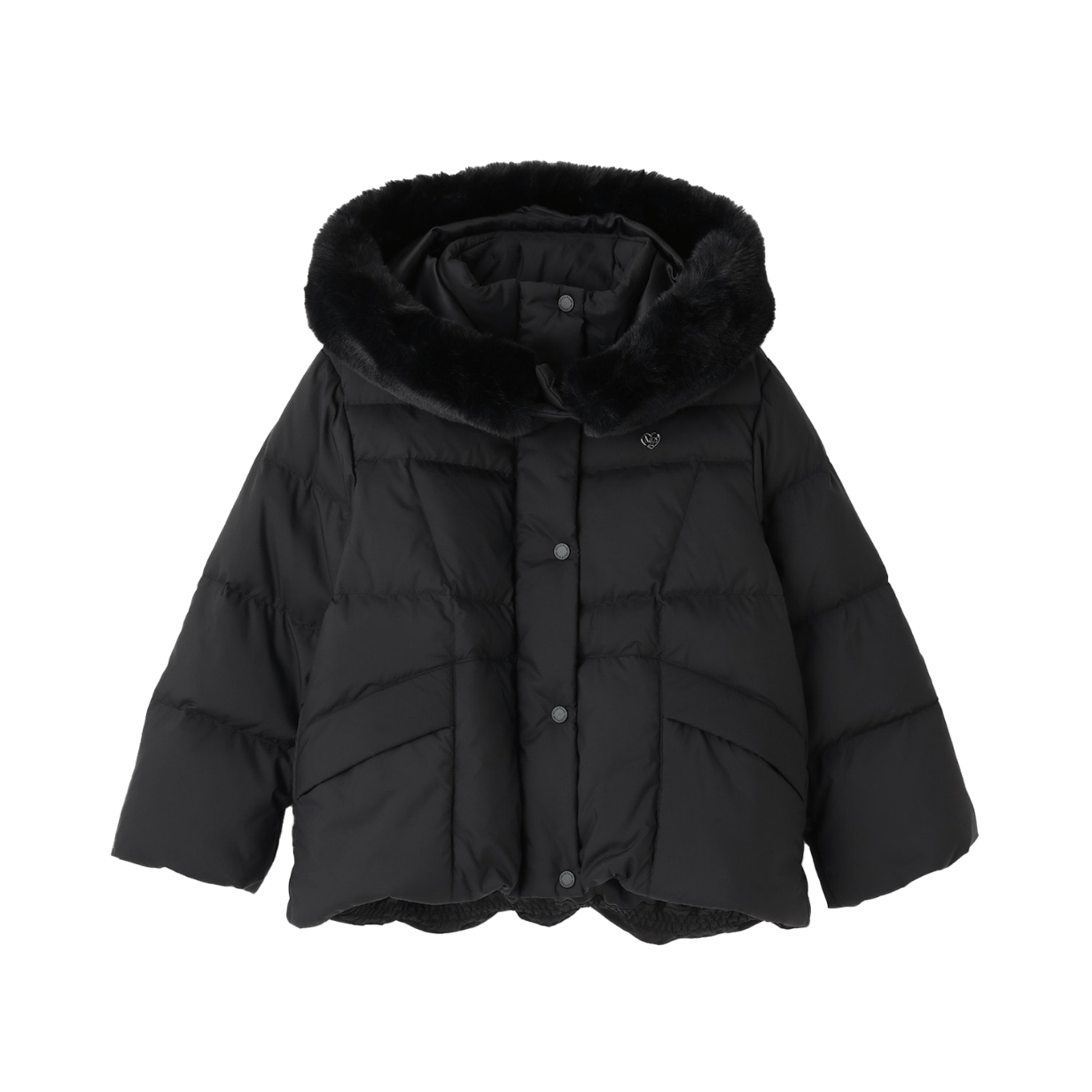 ボリューム感のあるフェイクファーが上品で大人っぽい印象のミドル丈ブルゾン。フードは取り外しでき、気分やコーディネートに合わせてアレンジできます。軽くて動きやすく、通学やおでかけなどデイリーにも活躍する一着です。