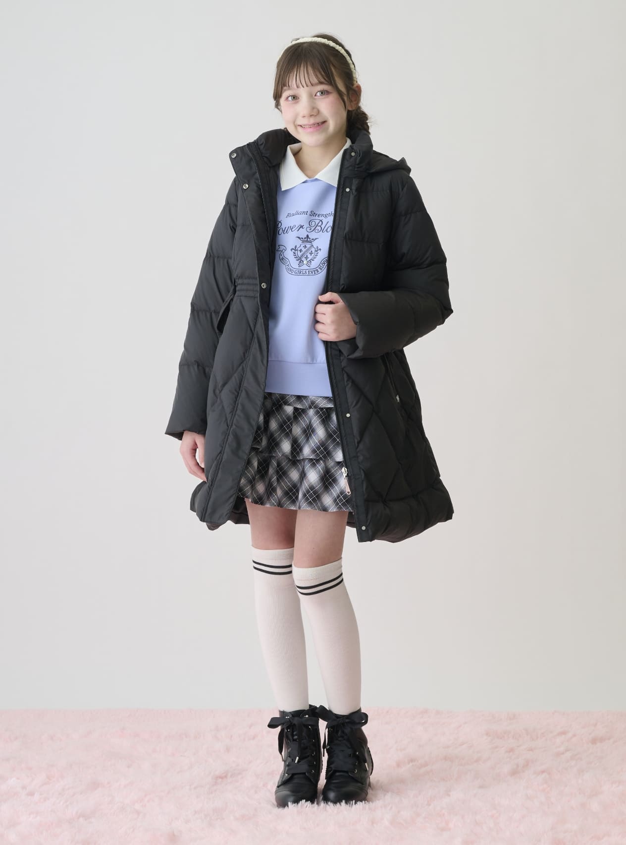 カジュアルながらも可愛い印象のボアブルゾンは、ふんわり感が魅力。軽量で動きやすく、通学やおでかけなど毎日のデイリーシーンにぴったりです。