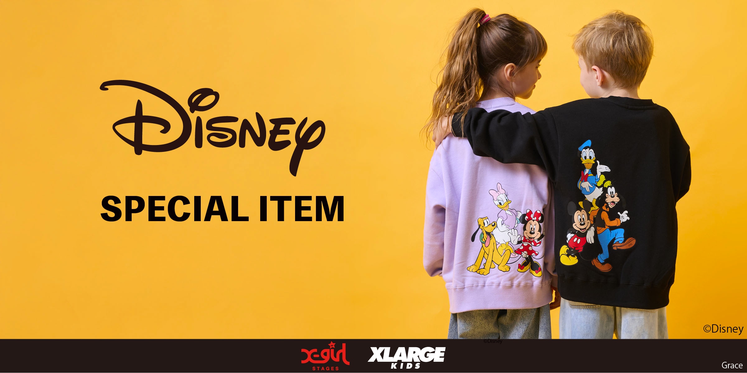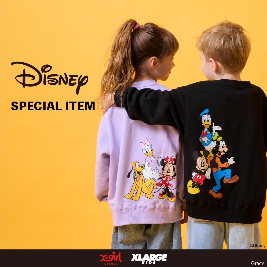 X-girl StagesとXLARGE KIDSからDisneyデザインのスペシャルアイテムが店舗とオンラインショップにて発売! 今回は姉妹や、兄弟とお揃いで着ても可愛いデザイン♪