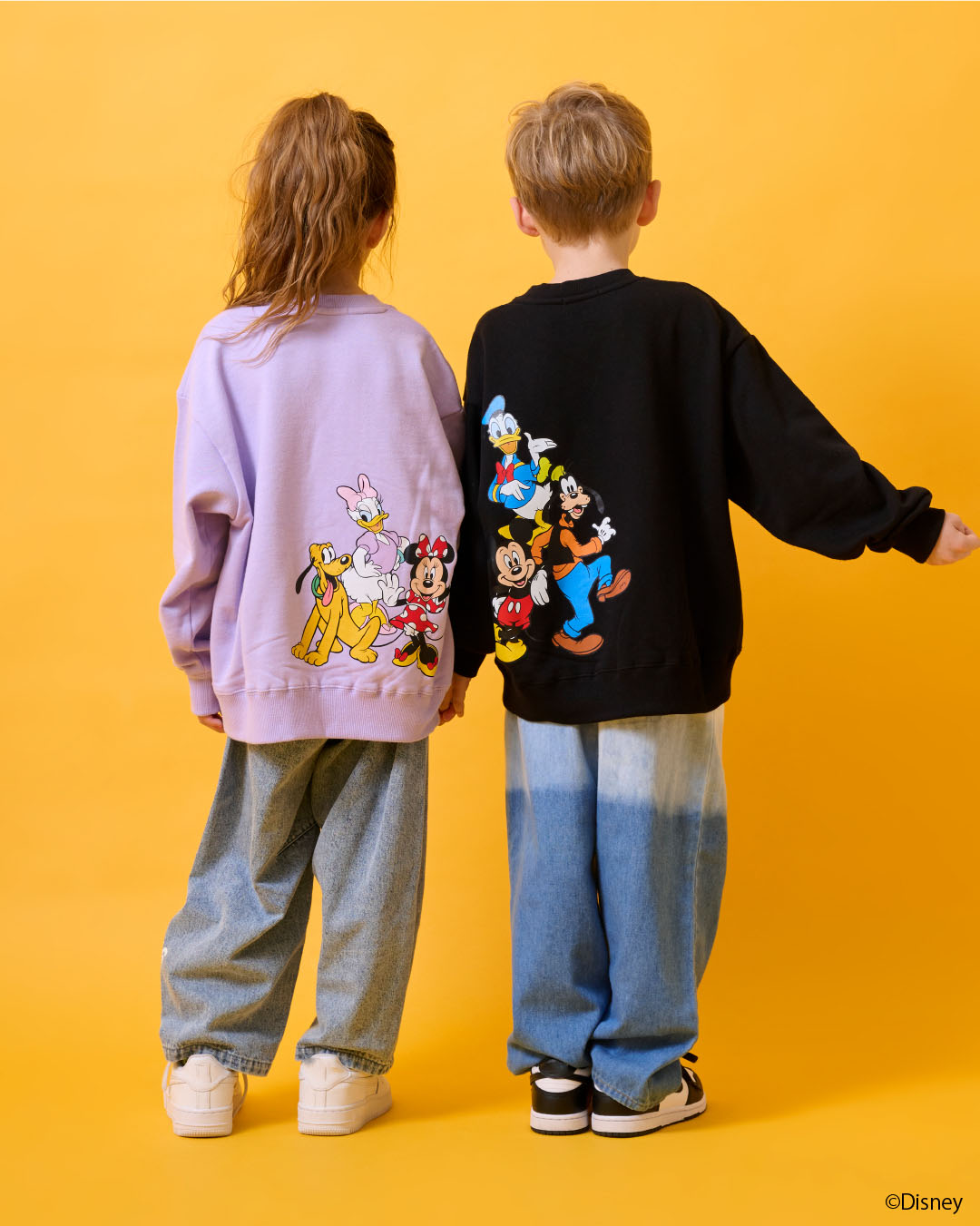 キャラクターたちのバックプリントに心惹かれるトレーナーは、兄妹やお友達とお揃いも楽しめるアイテム