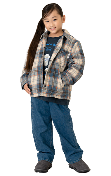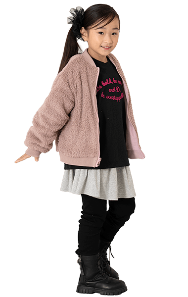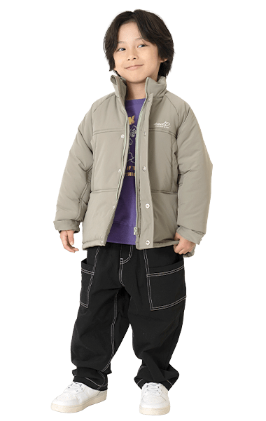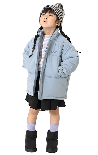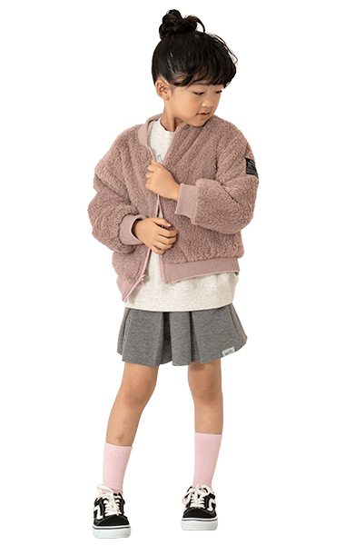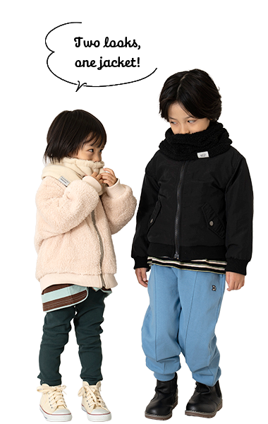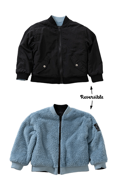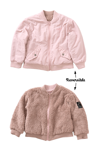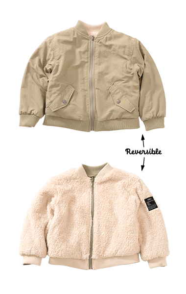 ナイロン・裏ボアの1着で2度楽しめるリバーシブルタイプ。毛足のあるボアは女の子も着やすく、カラバリがうれしい!ジャストサイズでバランスよく、ワンサイズアップでゆったりめに、着こなしやすさも◎です。