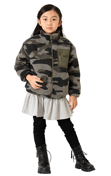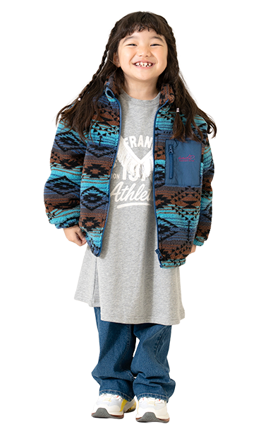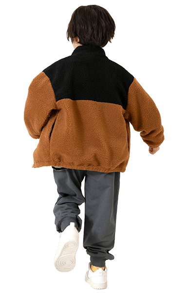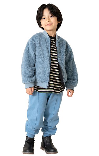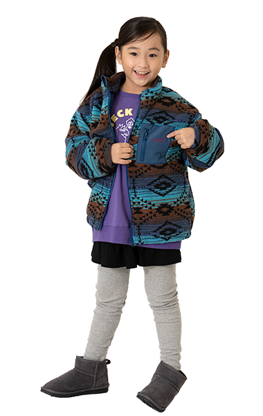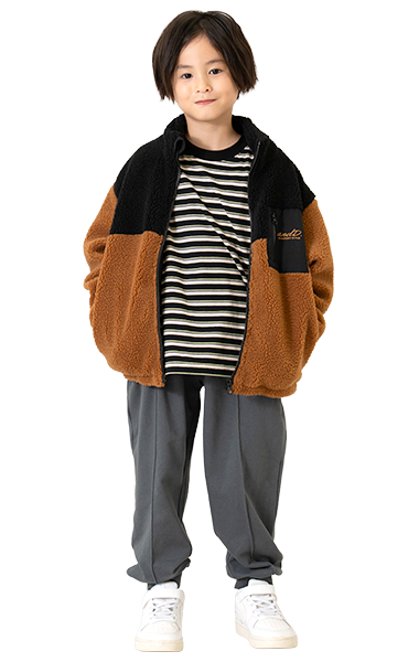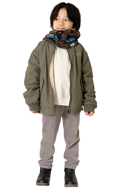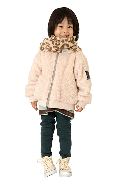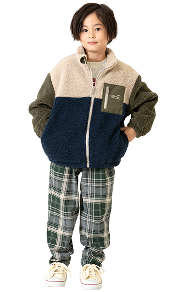 人気のボアブルゾンは、男の子も女の子も着られるアンドディー.らしいカラーの切り替えと柄で登場!通園通学はもちろん、外遊びやアウトドアにも活躍します。