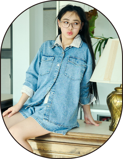 イージーデニムにシャツを巻いて。