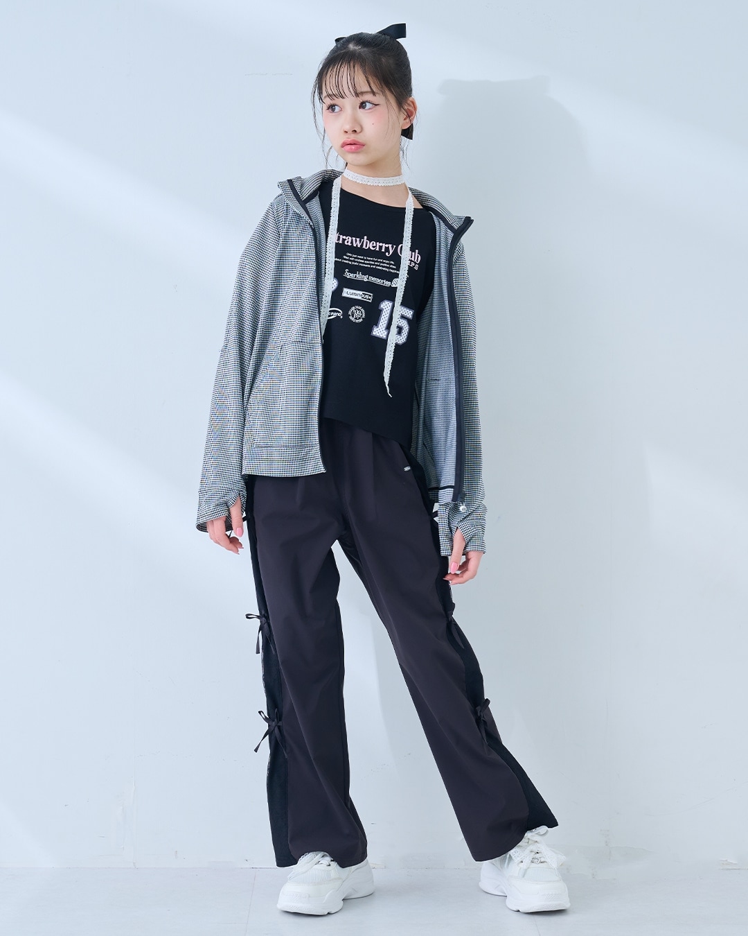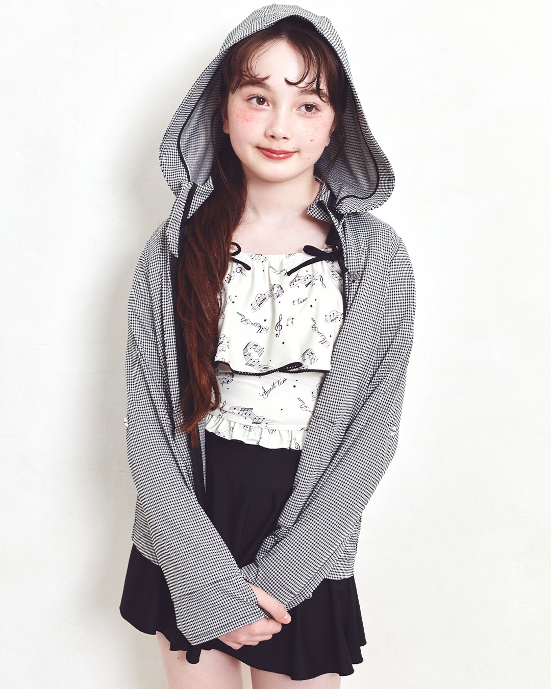 チェック柄でどんなアイテムとも合わせやすく、スイムウェアのほか、普段のコーデにも合わせやすいのもポイント◎