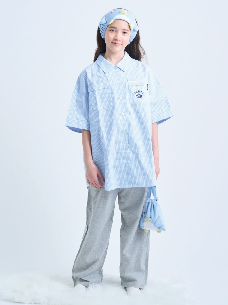 綿100%の素材にこだわったビッグシルエットのシャツと、履き心地のいいカットソー素材のパンツのセット。