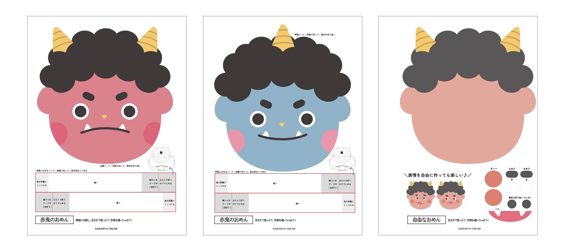③おにの表情を自由に作れる素材で作っても楽しい!